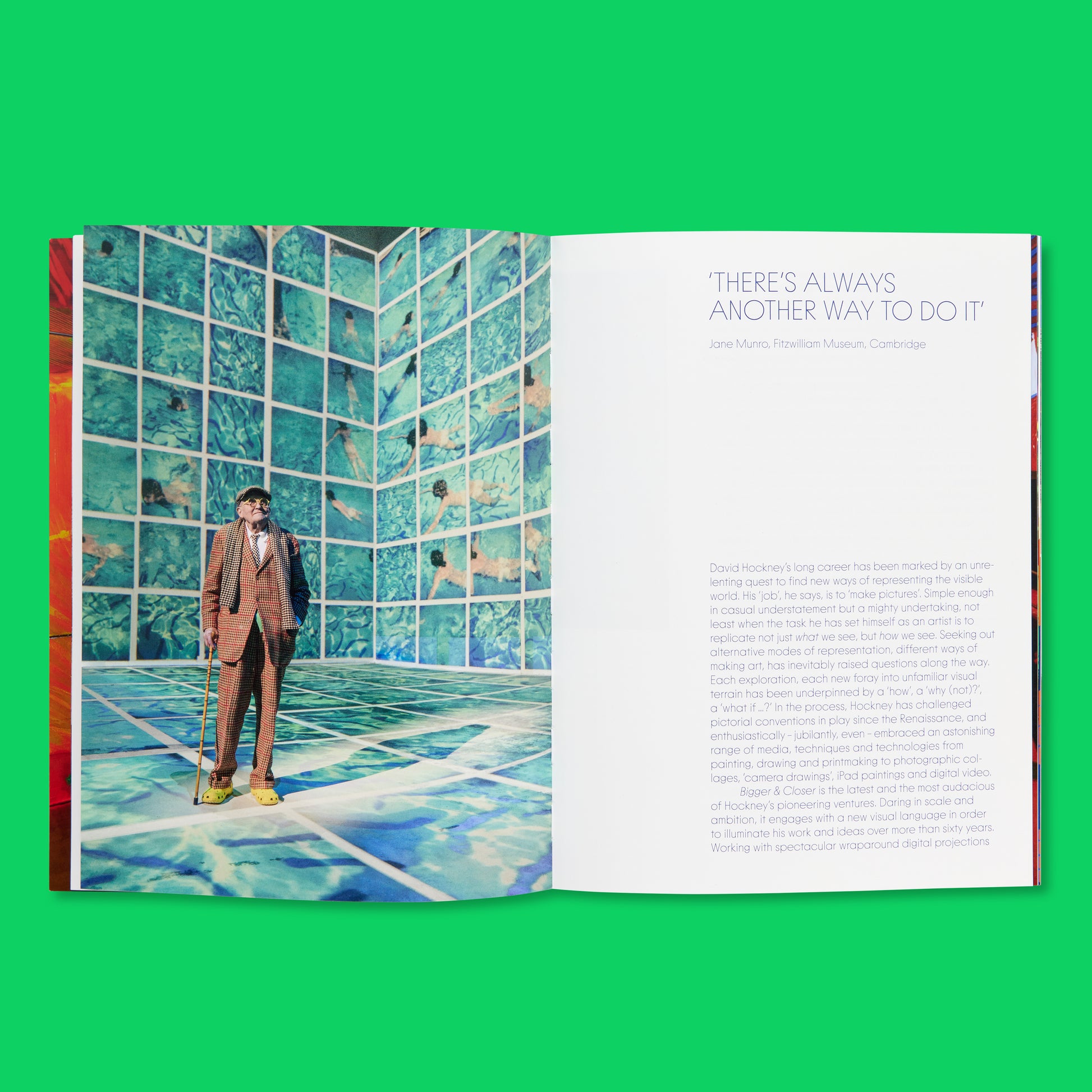 Our exclusive David Hockney Bigger & Closer (not smaller & further away) programme is the perfect companion to Lightroom's debut show. Transcripts of Hockney's voiceover and guest essays sit alongside photos of projections in the show space, serving as a primer to Hockney's work and artistic approach and the immersive experience of Lightroom.