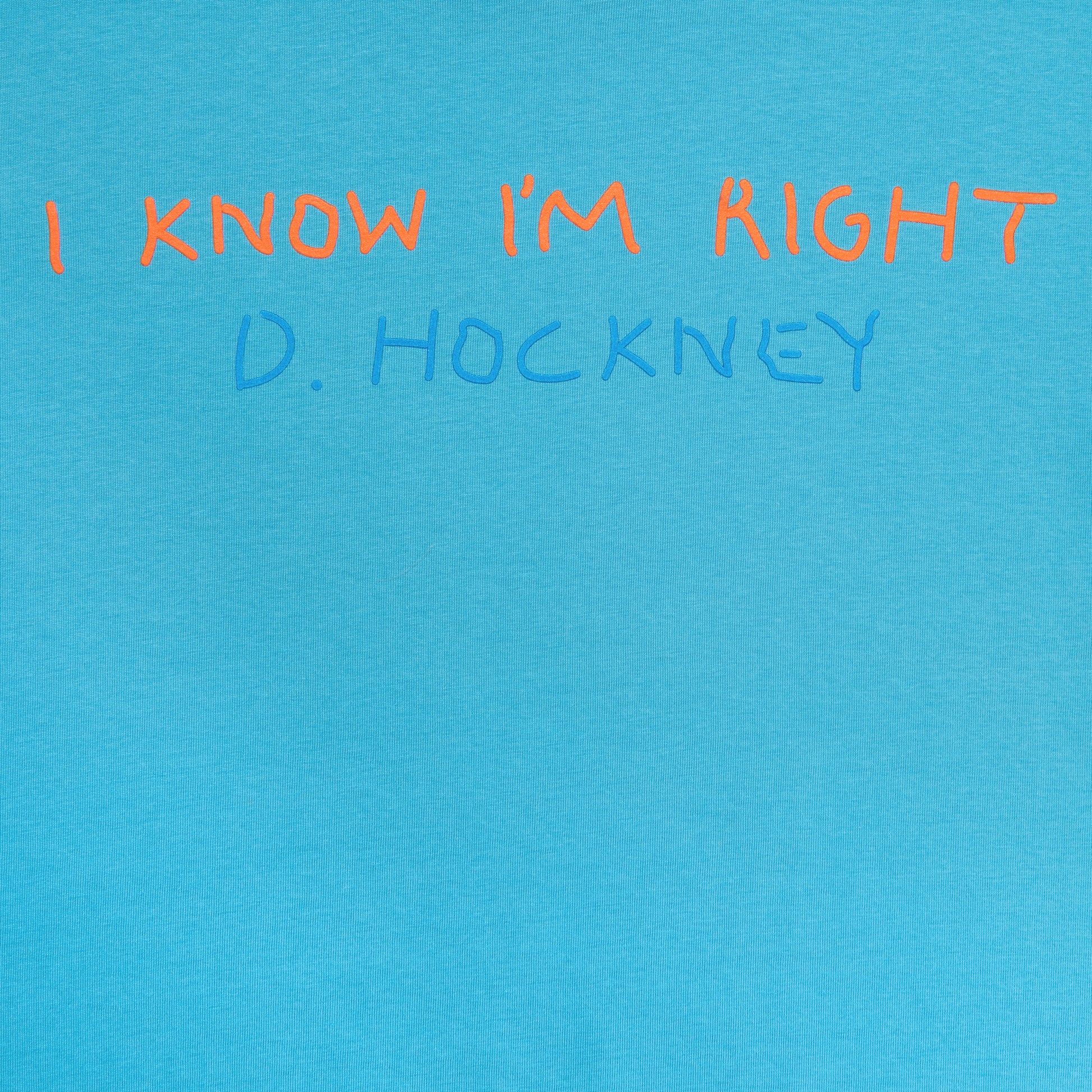 Shop our exclusive David Hockney Bigger & Closer (not smaller & further away) t-shirt collection to make a statement with your staples. Our ‘I Know I’m Right’ t-shirt is emblazoned with a playful quote from Hockney himself, printed on a vibrant blue lightweight cotton. Unisex fit with a ribbed crew neck.