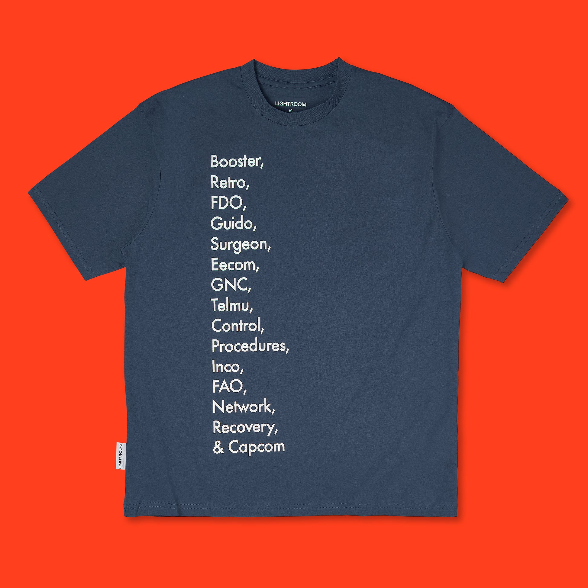 Check you're all systems go with this tee featuring the iconic mission control positions from the Apollo period. Made from 100% cotton in insignia blue, it's perfect for any space enthusiast.